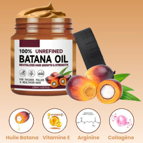 Extrait du palmier Elaeis Oleifera du Honduras 🌿, l'huile de Batana est un trésor ancestral utilisé pour nourrir et fortifier les cheveux.